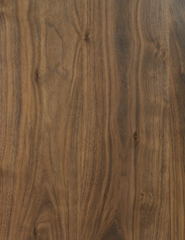 Walnut features a rich, flowing grain pattern with natural variation in tone. Its darker base color and dramatic grain create a luxurious and high-end appearance even before stain is applied.